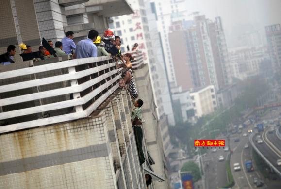 女子高楼轻生被救 围观者堵救护车欲一睹真容 女子,轻生,裸体,裸体坠楼